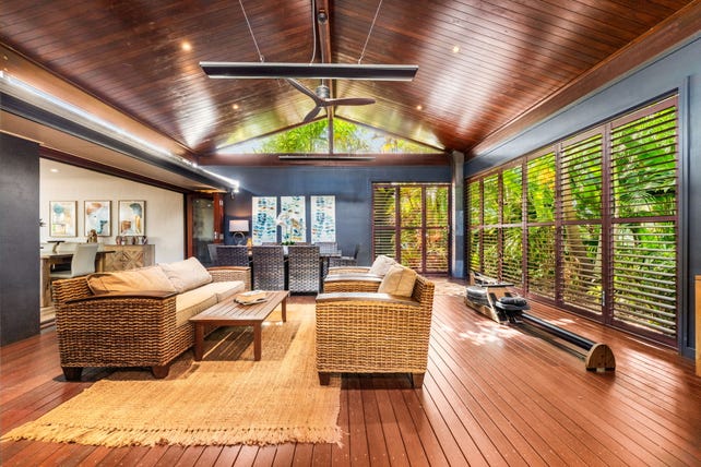 Beyond its secure gatehouse and private pedestrian access, the residence unfolds into a sanctuary of relaxed sophistication. The spacious single-level layout includes four well-appointed bedrooms, an oversized gourmet kitchen, and a seamless connection between indoor and outdoor living - all surrounded by award-winning tropical gardens.