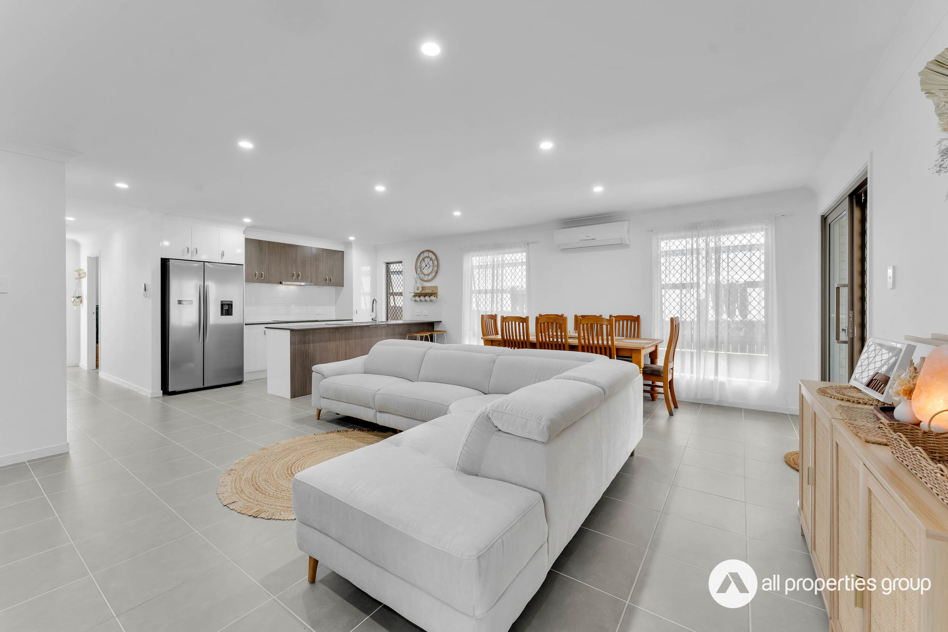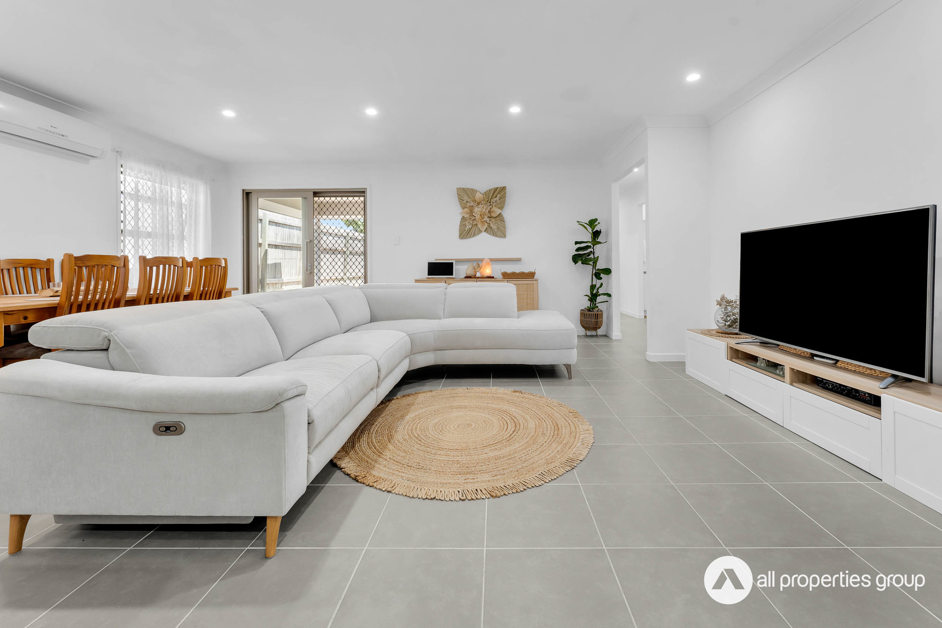 The spacious open-plan living area is the heart of the home, offering a comfortable retreat for relaxation and everyday activities. Equipped with air conditioning, it stays cool during the warmer months, making it a cozy spot for lounging, socializing, or serving as a central hub for family life. Designed for both comfort and versatility, this space can easily adapt to a variety of needs.