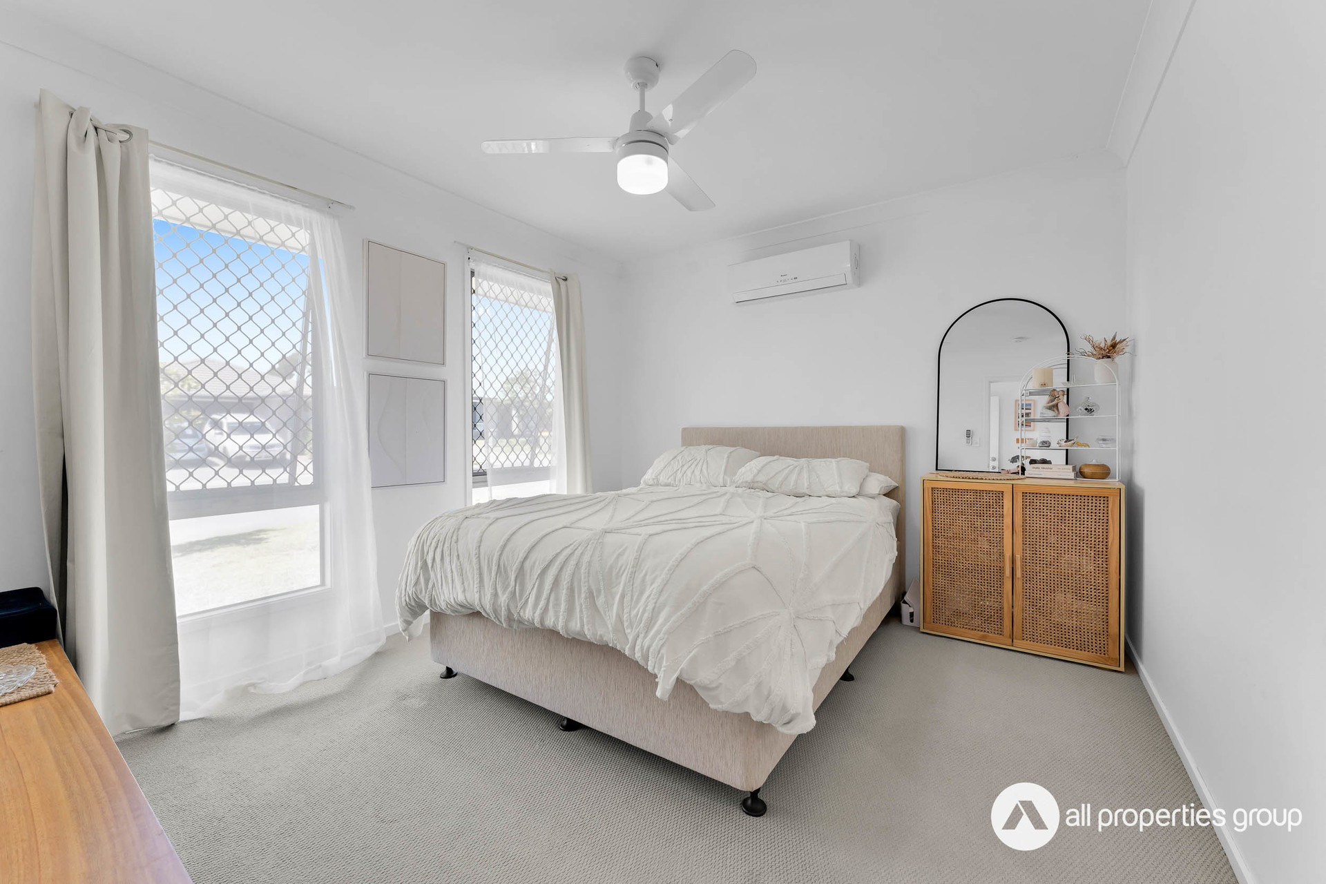 At the front of the home, the master bedroom is a private sanctuary. With an ensuite bathroom and a walk-in robe offering plenty of storage, it provides a peaceful, comfortable space to unwind. The air conditioning ensures the perfect climate year-round, making this retreat ideal for relaxation.