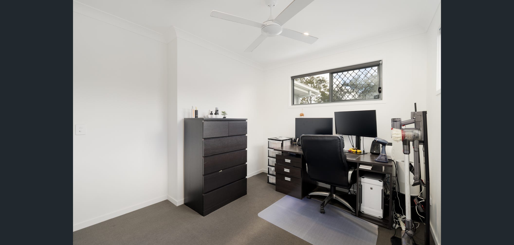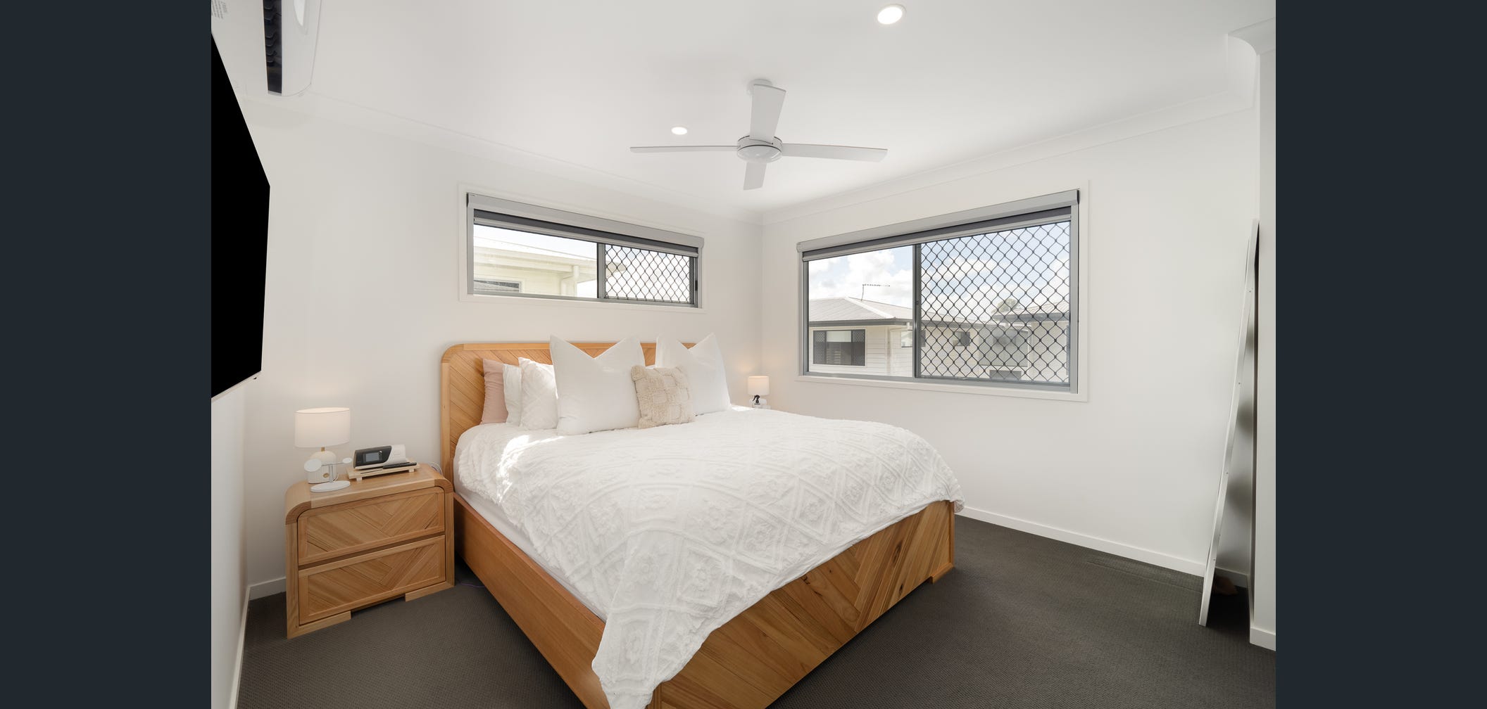 All three bedrooms are located upstairs, including a master suite with ensuite and air-conditioning βοΈ. The additional two bedrooms offer ceiling fans π¬οΈ and ample built-in storage, serviced by a central family bathroom.